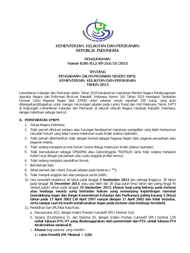 30.06.2021 · biro sdm aparatur dan organisasi kementerian kelautan dan perikanan gedung mina bahari iv lantai 3 jalan medan merdeka timur no.16, jakarta pusat 10110 kontak (021)3519070 ext.